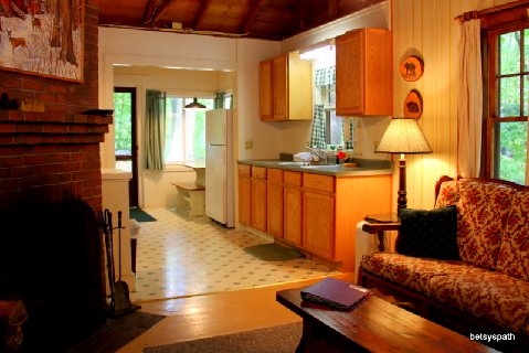 It has a comfortable living room with fireplace, a kitchen, and a bath.